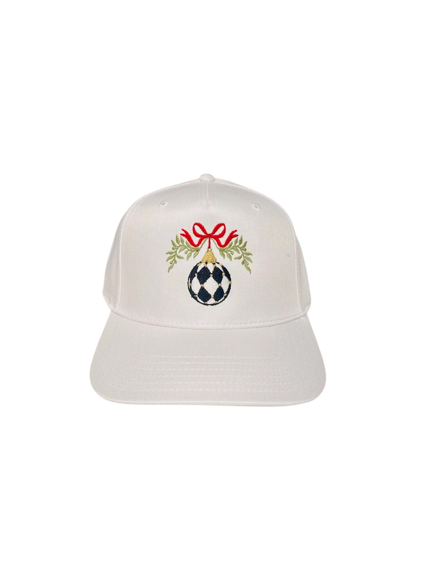 WHITE CANVAS CHRISTMAS ORNAMENT TRUCKER HAT - (Mix & Match Any 6 or More)